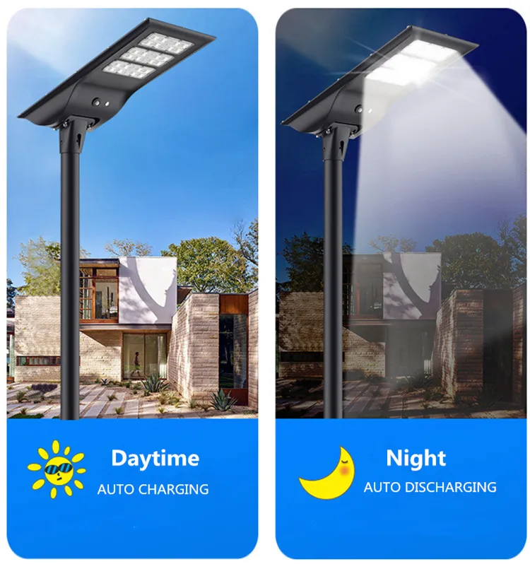 It features a smart MPPT controller that supports auto on/off based on daylight, time control settings, and a PIR motion sensor for energy saving.